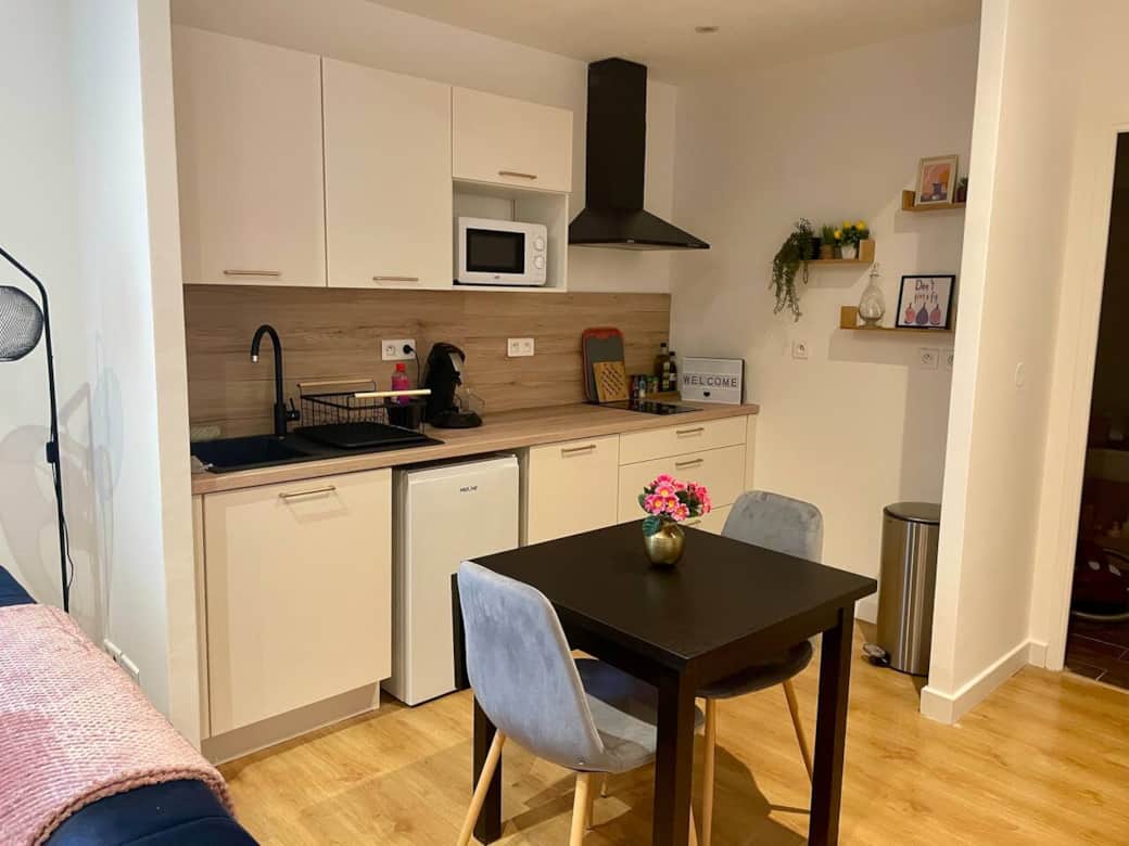 Un apartamento para dos recién renovado en el corazón de Carcassonne, a tres minutos de la estación de tren. Decoración cuidada con toques de terciopelo, papel pintado atrevido e iluminación suave — pensado para parejas. Se admiten mascotas. Tercer piso, sin ascensor.